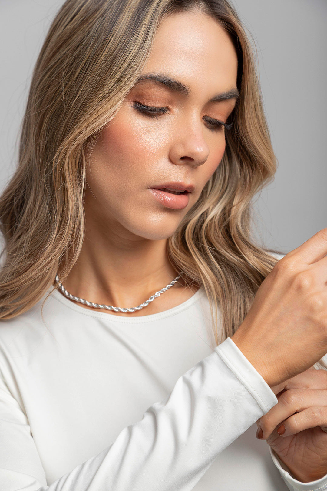 La Camisa Eloisa marfil con mangas largas y cuello redondo clásico es un básico para todos tus looks. Su tejido suave y elástico, se adapta perfectamente al cuerpo gracias a su silueta ajustada. Es ideal para usar sola o como capa base con chaquetas o para acompañar prendas más llamativas. Es un esencial en tu closet cápsula, que funciona tanto para outfits casuales como para looks más elegantes.