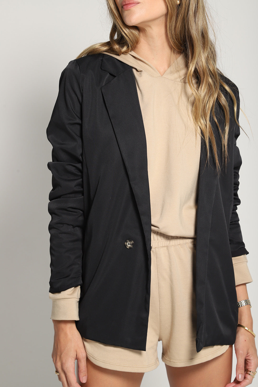 Dale un toque de elegancia y versatilidad a tu closet con nuestro blazer de mujer color negro. Con su diseño clásico, silueta semi amplia, forro de chalis y botón delantero, ofrece frescura y comodidad. Perfecto para combinar con pantalones y camisas elegantes en reuniones de trabajo, o con jeans y camisetas para un look relajado en un brunch con amigas. Es una prenda esencial que te permitirá crear múltiples variaciones de estilo con facilidad y sofisticación.