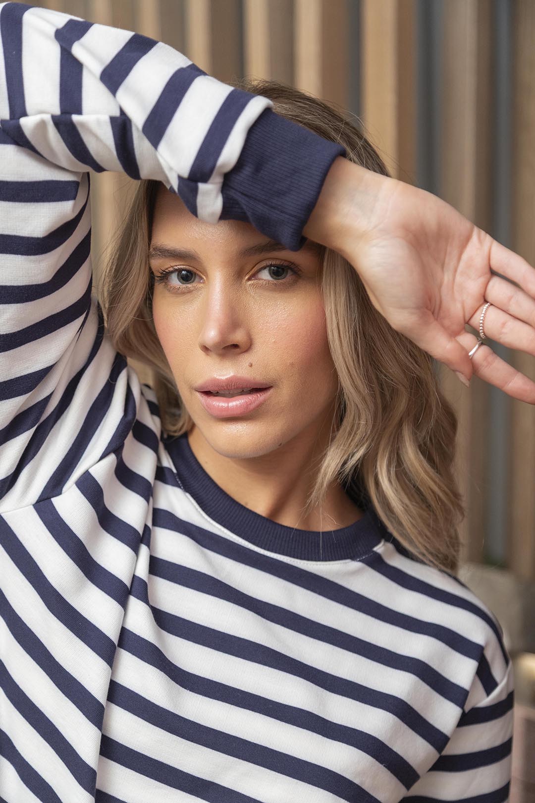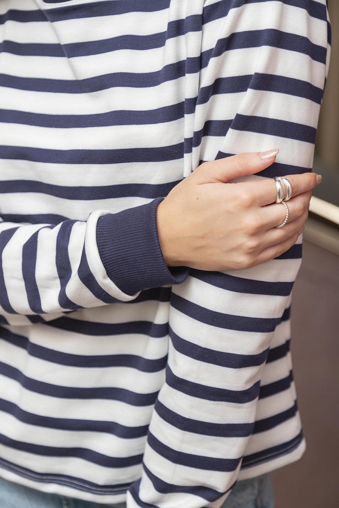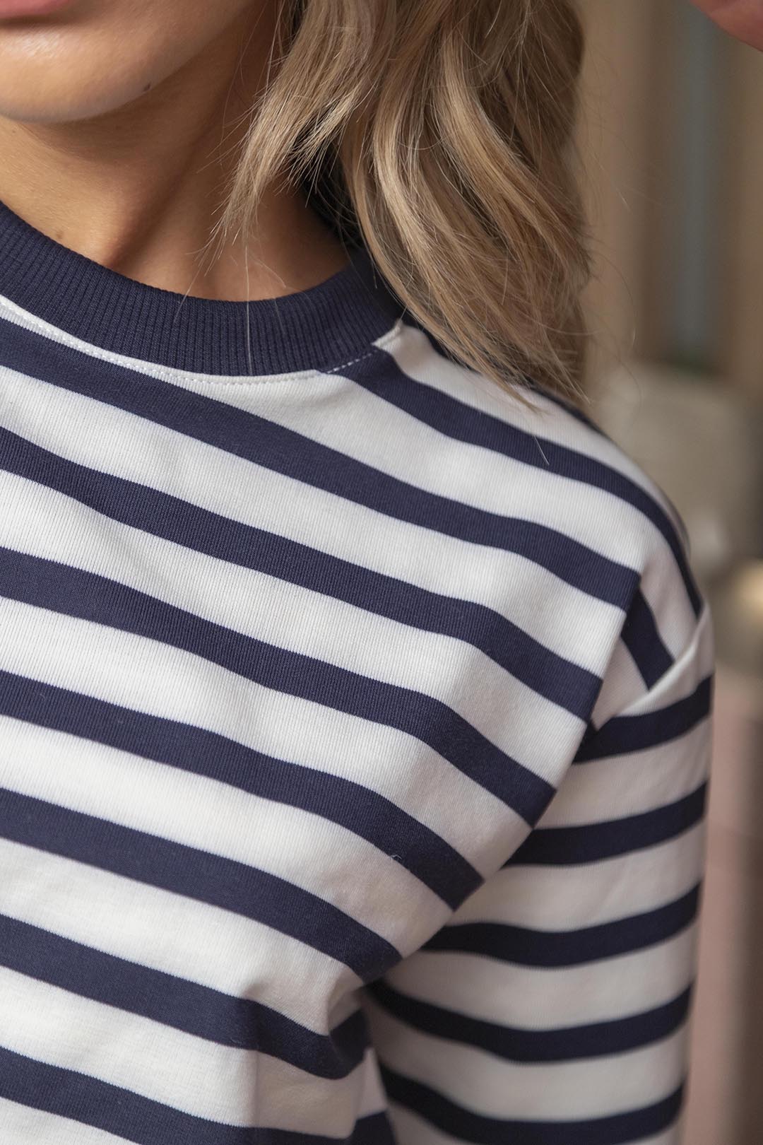 Este buzo de rayas azules es la combinación perfecta de comodidad y estilo. Con su diseño clásico en tonos azul y blanco, es una prenda atemporal que siempre se verá bien en tu clóset. Su silueta amplia, los puños ajustados y el cuello redondo lo hacen versátil y perfecto para cualquier plan casual. Ideal para esos días en los que quieres estar cómoda sin perder el estilo.