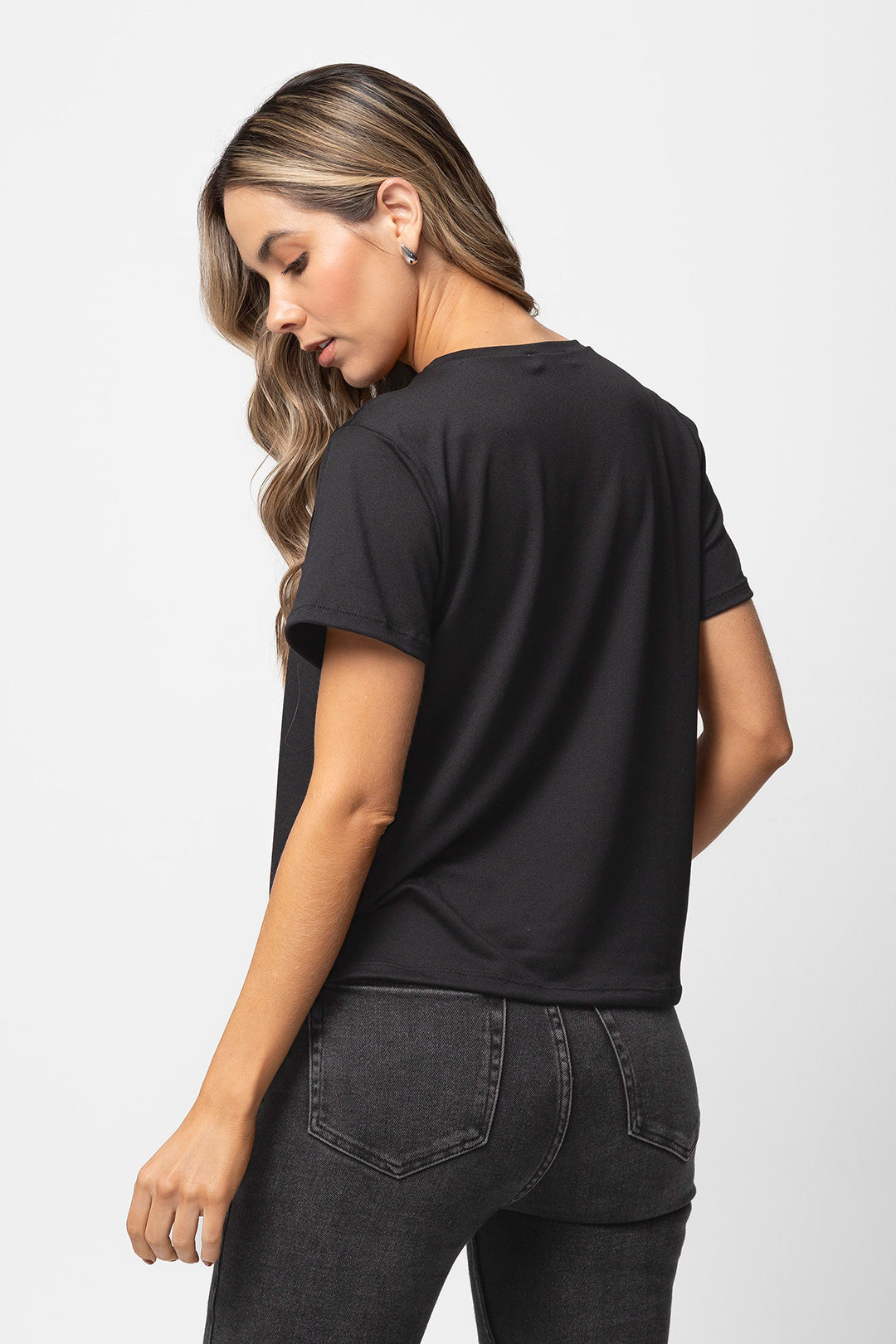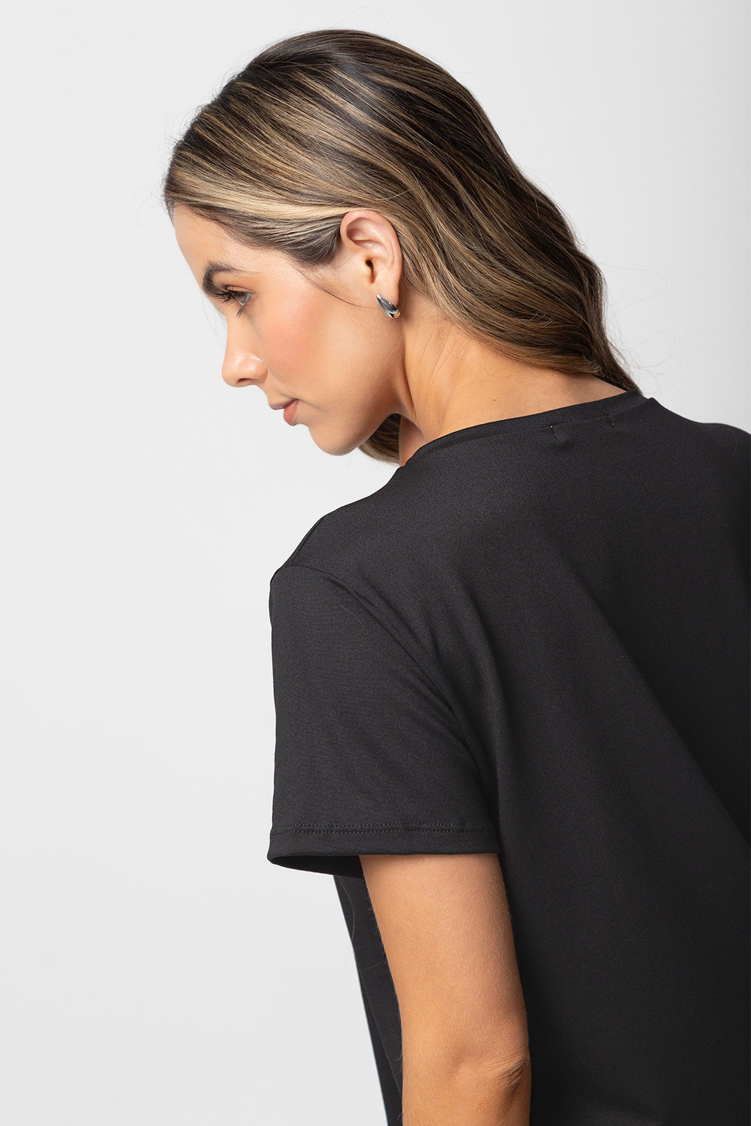 Esta camiseta básica de mujer, es ese esencial que nunca debe faltar en tu armario. Con silueta regular, cuello redondo clásico y manga corta, está confeccionada en piel de durazno, un tejido suave al tacto que no se arruga y se mantiene impecable todo el día.